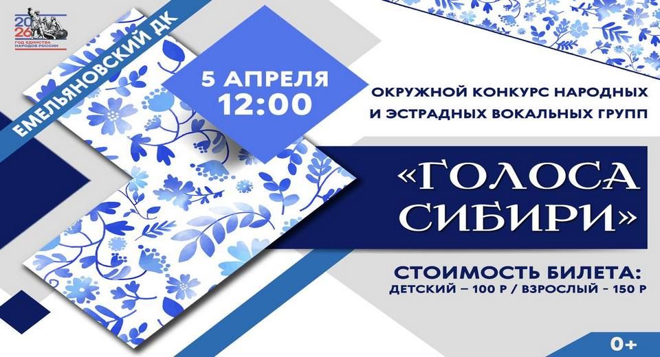 Приглашаем Вас 05 АПРЕЛЯ в Емельяновский РДК на Открытый межрайонный фестиваль-конкурс народных и эстрадных вокальных групп "Голоса Сибири"